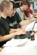 Konzentration beim Team POVaddict. Von links: Christian Perle, Michael Karcher. (c) LinuxTag 2011